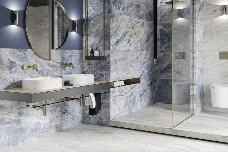 The Infinity Bathrooms tile range includes porcelains, ceramics, natural stone and mosaics sourced from around the World.